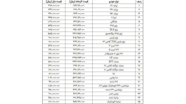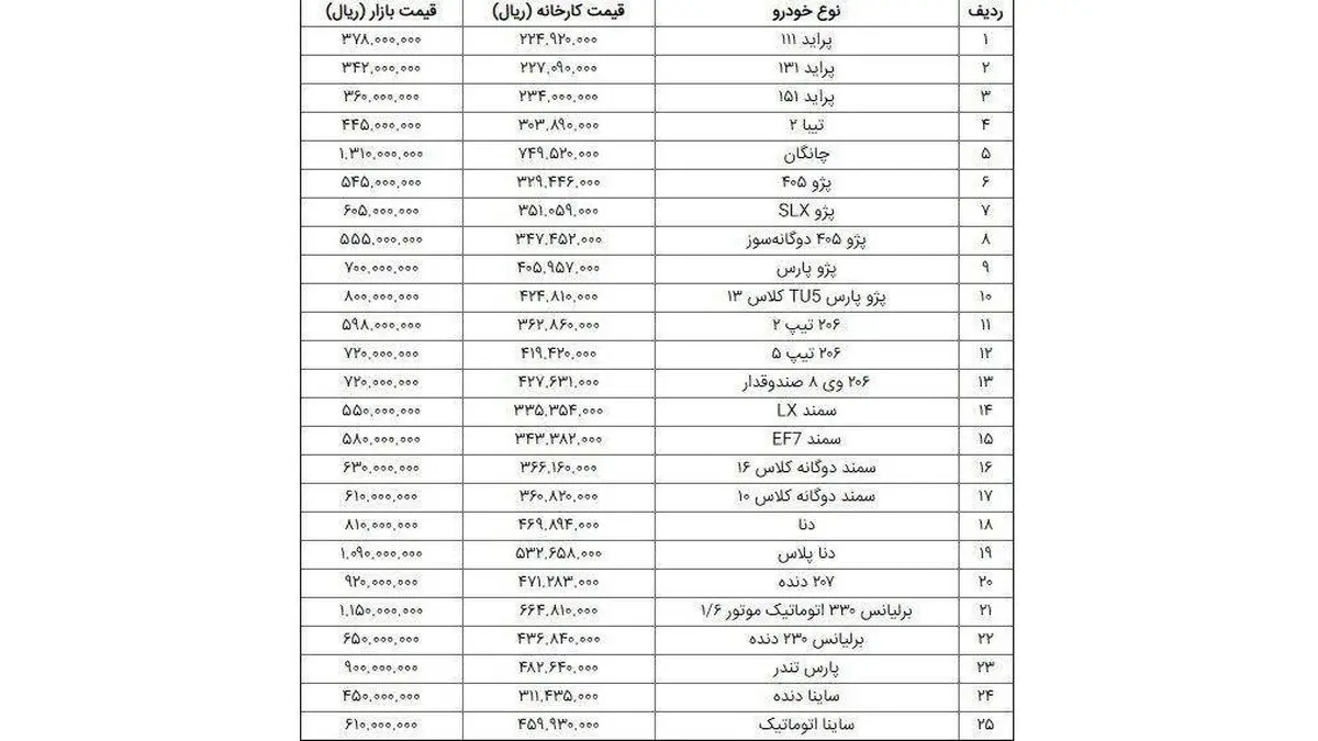 قیمت خودرو ۹۷/۰۸/۲۹ + جدول
