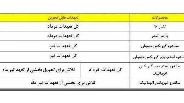 لذا پس از اعلام غربالگریهای مد نظر با هدف تحویل خودرو به مشتریان مصرف کننده، مابقی خودروهای قابل تولید در صورت تأمین اقلام ساخت داخل به شرح جدول ذیل (تصویر جدول در ذیل خبر مشاهده میشود) تا پایان سال جاری به مشتریان تحویل خواهد شد.