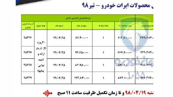 به گزارش رکنا، ایران خودرو شرایط فروش اقساطی محصولات این شرکت را به تعداد بسیار محدود از ساعت 11 صبح روز چهارشنبه مورخ 98/04/19 تا زمان تکمیل اجرایی خواهد کرد.