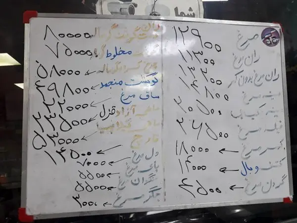 قیمت سایر قسمتهای مرغ نیز به این شرح است: هر کیلو ران مرغ ۱۱ هزار و ۳۰۰ تومان، سینه مرغ ۱۴ هزار و ۸۰۰ تومان، سینه کبابی ۲۰ هزار و ۵۰۰ تومان، فیله مرغ ۲۶ هزار و ۵۰۰ تومان، کمر مرغ ۱۸ هزار تومان، کتف و بال ۱۴ هزار تومان و گردن مرغ ۴۵۰۰ تومان و ساق مرغ ۲۲ هزار تومان، دل مرغ ۷ هزار تومان، پای مرغ ۵۵۰۰ تومان، سنگدان مرغ ۵۵۰۰ تومان و جگر مرغ ۳ هزار تومان عرضه میشود.