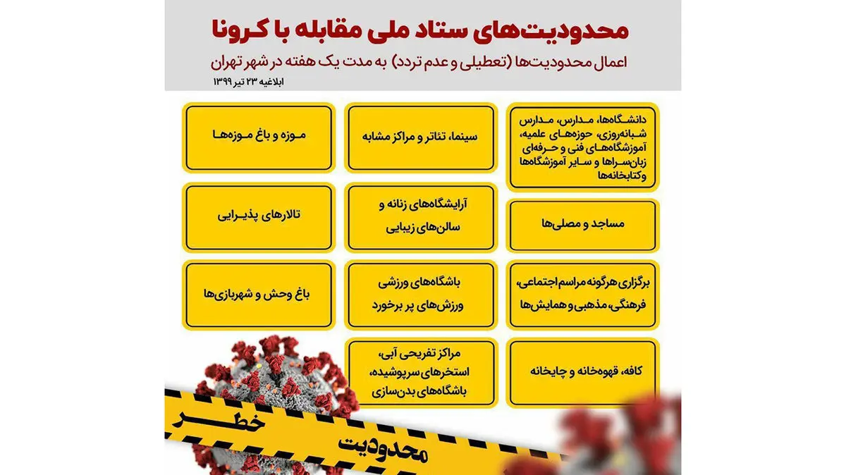 محدودیتهای کرونایی یک هفتهای در تهران چه مواردی هستند؟
