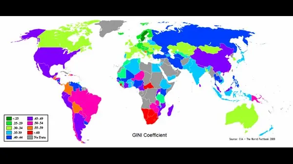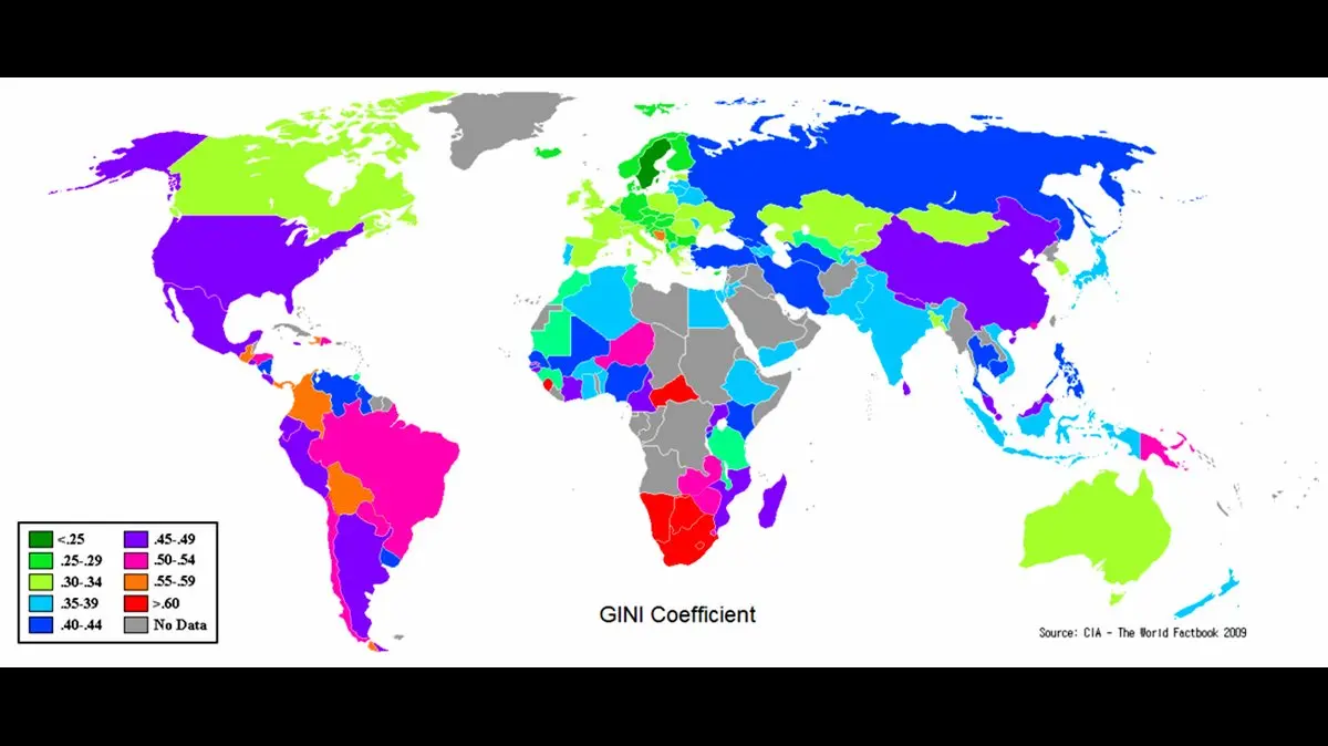 در حالیکه بیشتر ملتهای توسعه یافته اروپایی و کانادا دارای شاخص جینی بین ۲۴ و ۳۶ هستند، ایالات متحده ـمریکا و مکزیک شاخص جینی بالای ۴۰ درصد دارند که نشان می دهد این کشور دارای نابرابری بیشتری در ثروت و درآمد هستند (در حالیکه شاخص جینی در کشور ما طبق آمار ویکی پدیا ۴۲ درصد می باشد).