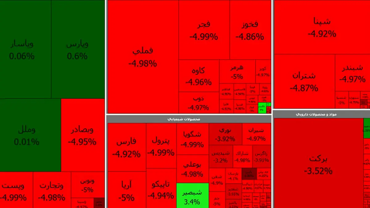 نمادهای فملی، شستا، فارس، شپنا و شبندر بیشترین اثر منفی را بر روند حرکت شاخص گذاشتهاند.