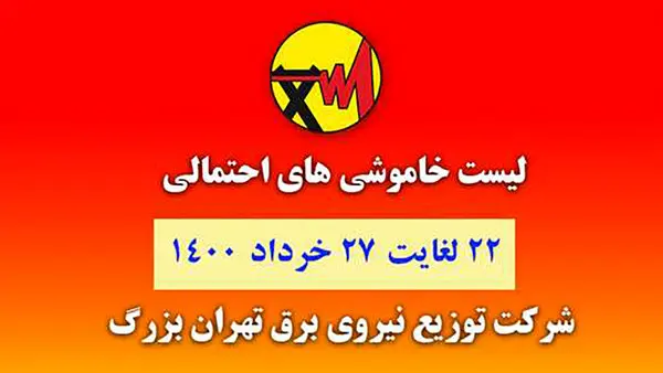 جدول خاموشی های احتمالی برق شهر تهران از تاریخ 22 لغایت 27 خرداد 1400 را با ورود در اینجا ببینید.