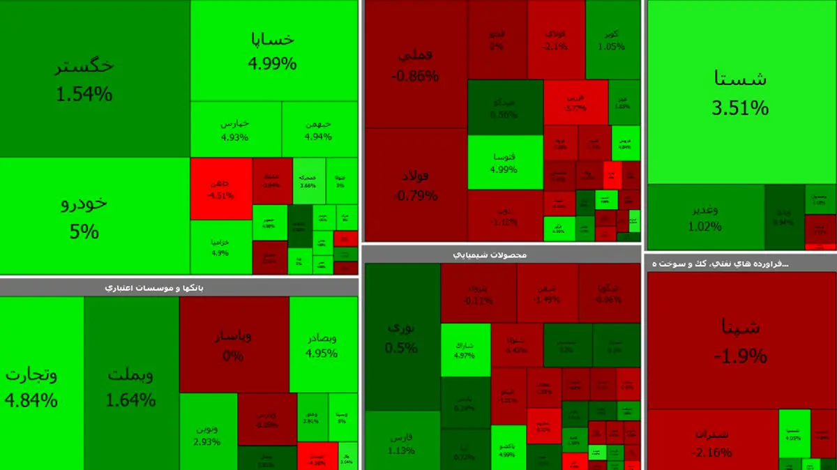 بورس در مسیر سبز افتاد / ظهر امروز دوشنبه 31 خرداد + جدول نمادها