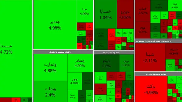 شستا شاخص بورس امروز را در دست گرفت / دوشنبه 7 تیر ماه + جدول نمادها