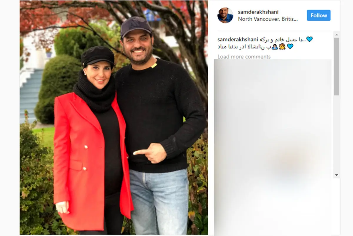 رکنا: سام درخشانی با انتشار عکسی از خودش به همراه همسرش که باردار است خبر از تولد نوزادش در آذر ماه داد.