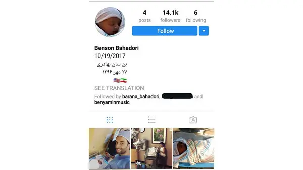 پیج پسر ده روزه بنیامین بهادری با فالورهای بالا در اینستاگرام!