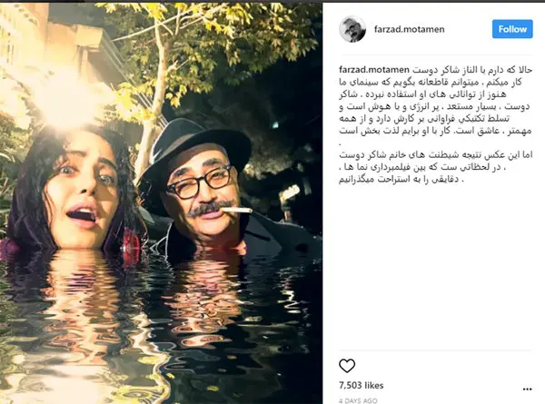 رکنا: فرزاد موتمن، کارگردان کشورمان که این روزها مشغول فیلمبرداری فیلم جدید خود به نام سراسر شب است با انتشار این عکس از شیطنت های الناز شاکردوست گفت.
