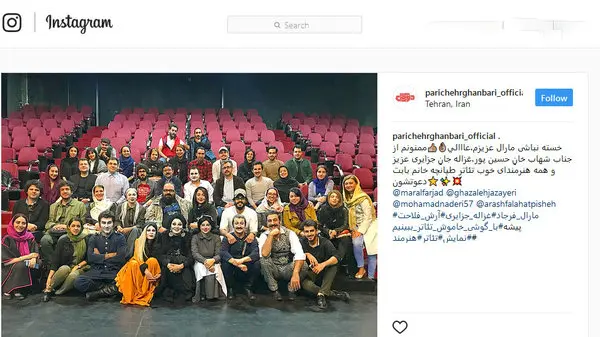 رکنا: پریچهر قنبری عکسی را در پشت صحنه تئاتر طپانچه خانم که بازیگر آن مارال فرجاد است منتشر کرد.