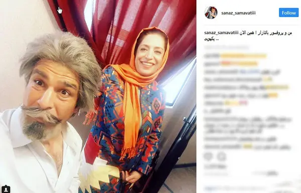 ساناز سماواتی که با سریال نود شب "مهران مدیری" به شهرت رسید، در صفحه اینستاگرامش عکسی از خودش در کنار یوسف تیموری که با گریم پروفسور بالتازار است منتشر کرد.