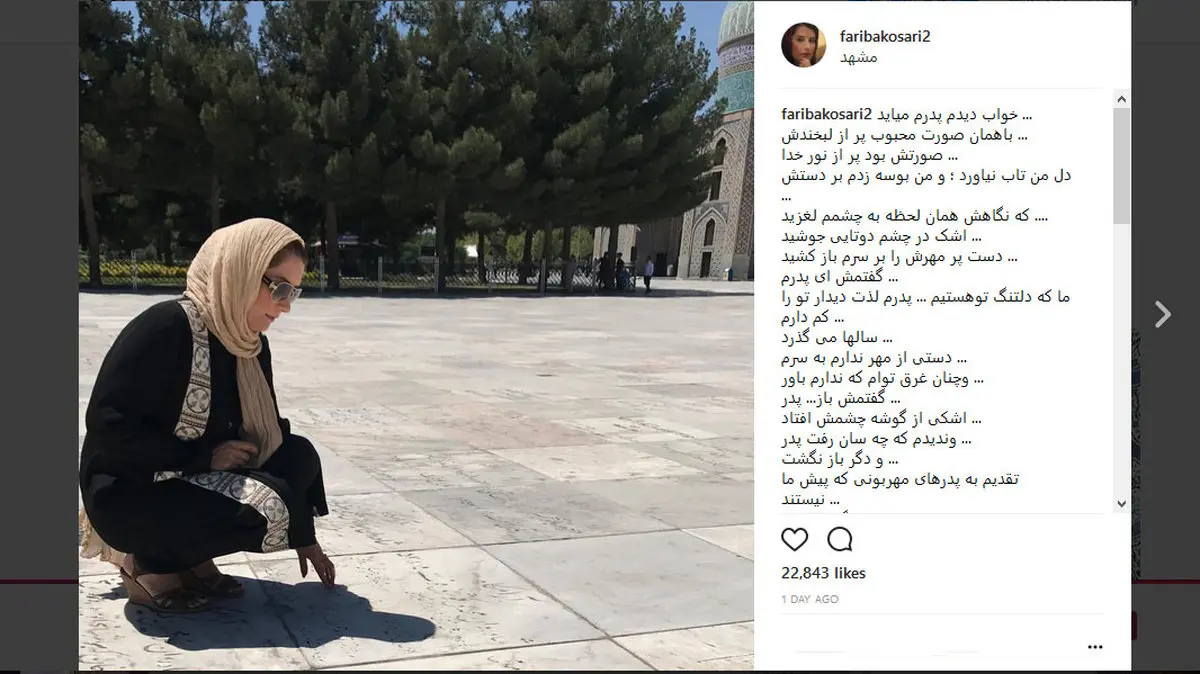 رکنا: فریبا کوثری عکسی را بر مزار پدر در خواجه ربیع مشهد منتشر کرد.