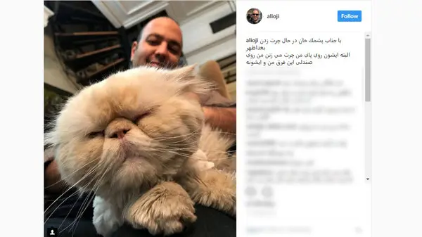 رکنا: علی اوجی عکسی از گربه اش در صفحه اینستاگرامش منتشر کرد. این در حالی است که روز گذشته همسرش نرگس محمدی نیز از گربه اش رونمایی کرده بود!