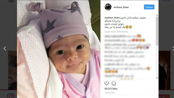 رکنا: محسن کیایی عکسی از برادرزاده خود منتشر کرد.