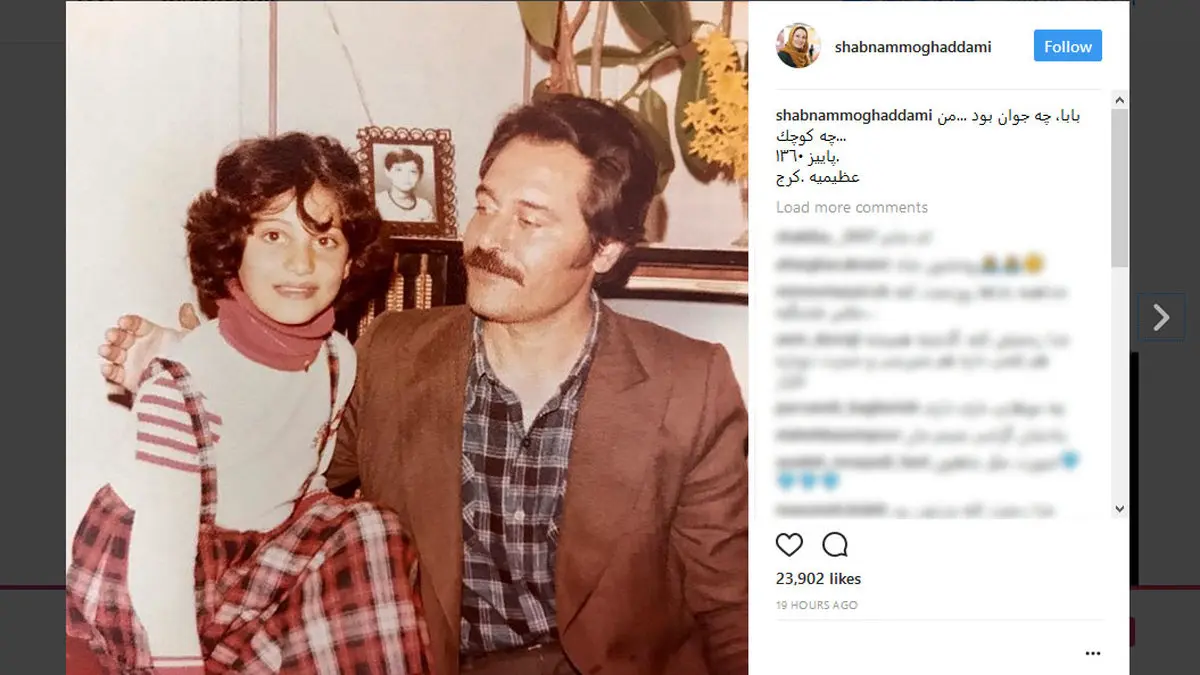 رکنا: شبنم مقدمی در صفحه خود عکسی از دوران کودکی به همراه پدرش منتشر کرد.