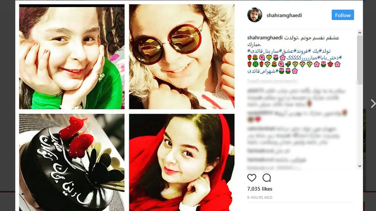 رکنا: شهرام قائدی تولد دخترش،سارینا قائدی را تبریک گفت.