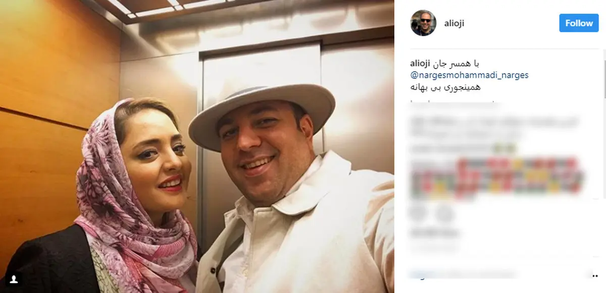 رکنا: علی اوجی با انتشار این عکس در اینستاگرامش نوشت: با همسر جان همینجورى بى بهانه