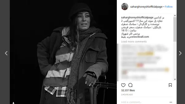 تیپ متفاوت سحر قریشی در یک تئاتر +عکس
