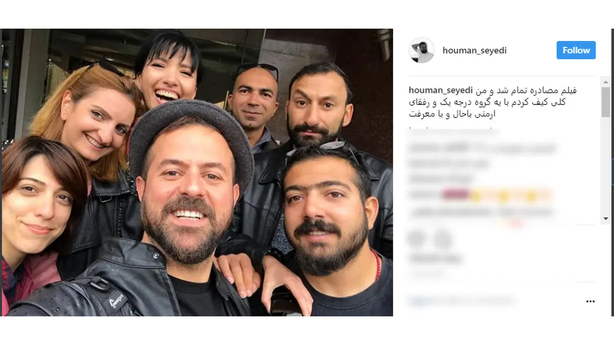 رکنا: هومن سیدی با همکاران ارمنی اش، پس از اتمام پروژه فیلم مصادره به کارگردانی رحمان احمدی یک سلفی خندان و شاد منتشر کرد.