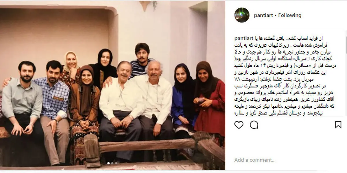 در تصویر کارگردان کار آقای منوچهر عسگری نسب عزیز رو میبینید به همراه اساتیدم خانم پروانه معصومی و آقای کشاورز عزیز. همینطور زنده نامهای زیبای بازیگری که دلتنگشان میشوم و میشویم.