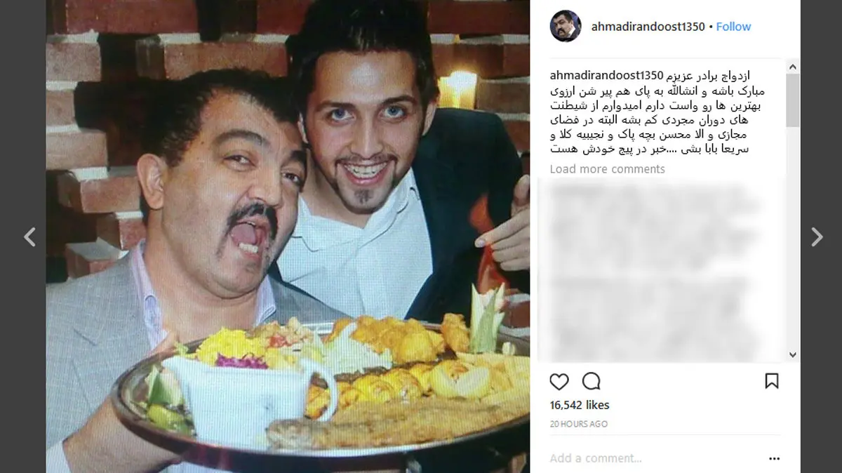 رکنا: احمد ایراندوست با انتشار تصویری ازدواج محسن افشانی را تبریک گفت.