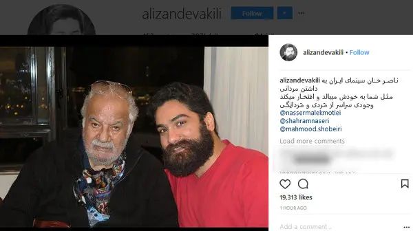 رکنا: علی زند وکیلی با انتشار پستی به ناصر ملک مطیعی ابراز ارادت کرد.