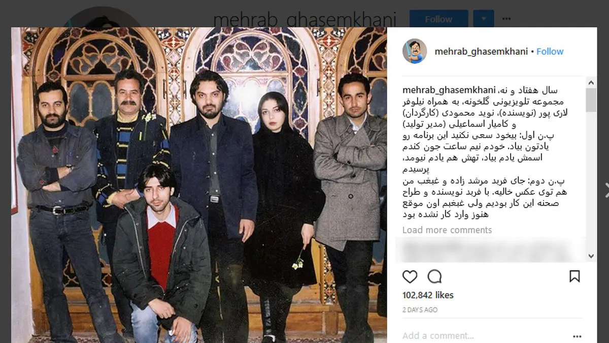 رکنا: مهراب قاسمخانی تصویری قدیمی مربوط به پشت صحنه یکی از کارهایش را در صفحه شخصی خود در اینستاگرام منتشر کرد.