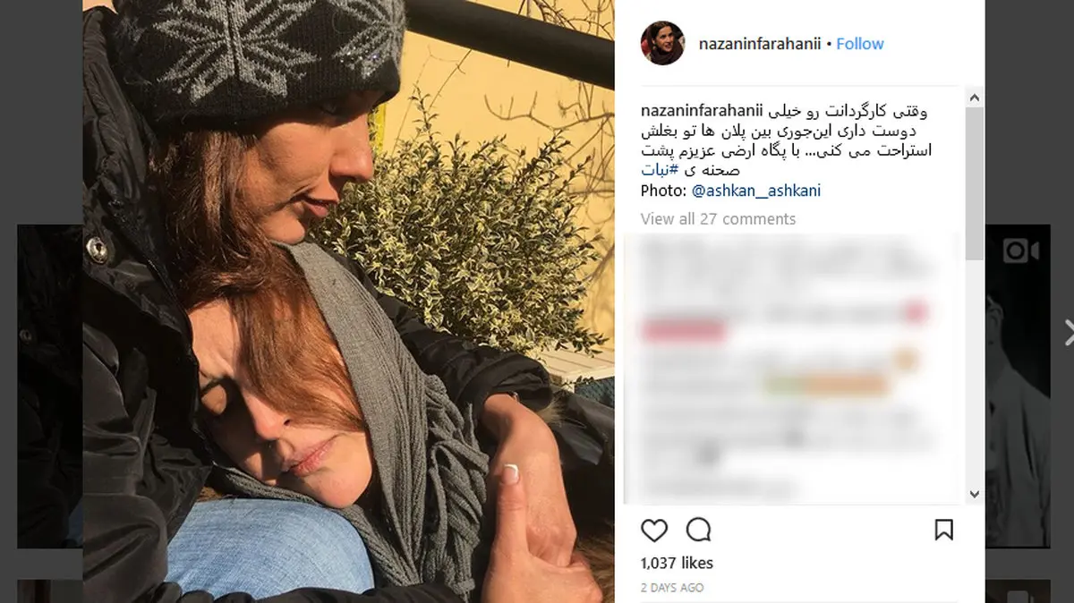 رکنا: نازنین فرهانی عکسی در آغوش کارگردان فیلم نبات منتشر کرد.