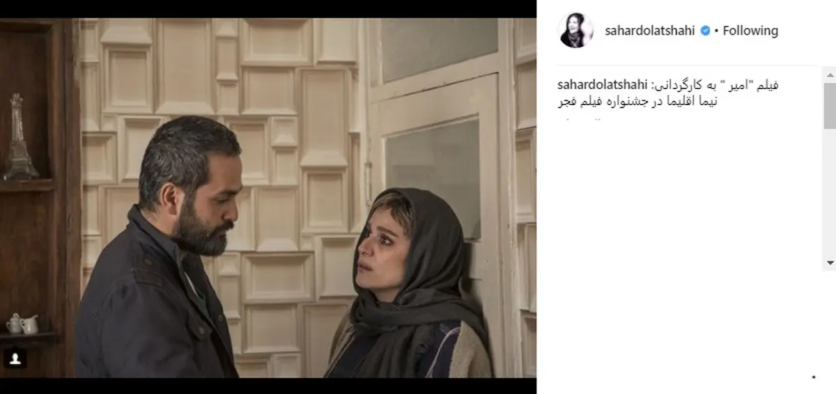 سحر دولتشاهی عکسی از فیلم امیر ساخته نیما اقلیما را در اینستاگرام Instagram خود منتشر کرد.