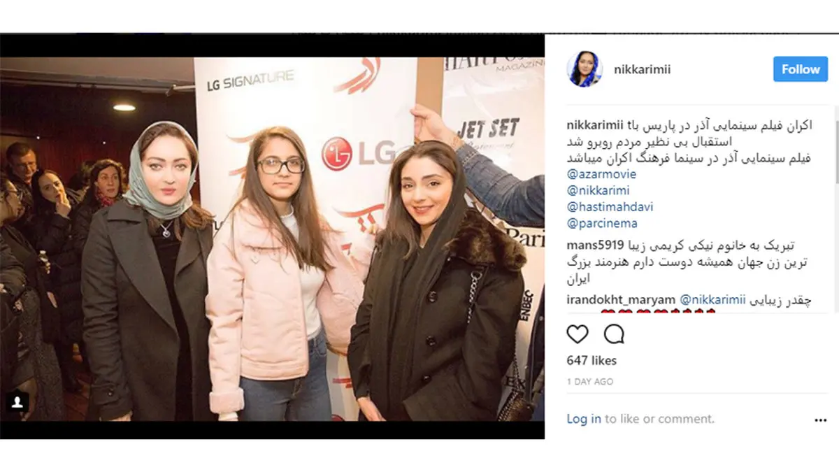 رکنا: اکران فیلم سینمایی "آذر" با بازی نیکی کریمی در پاریس با استقبال بی نظیر روبرو شد.