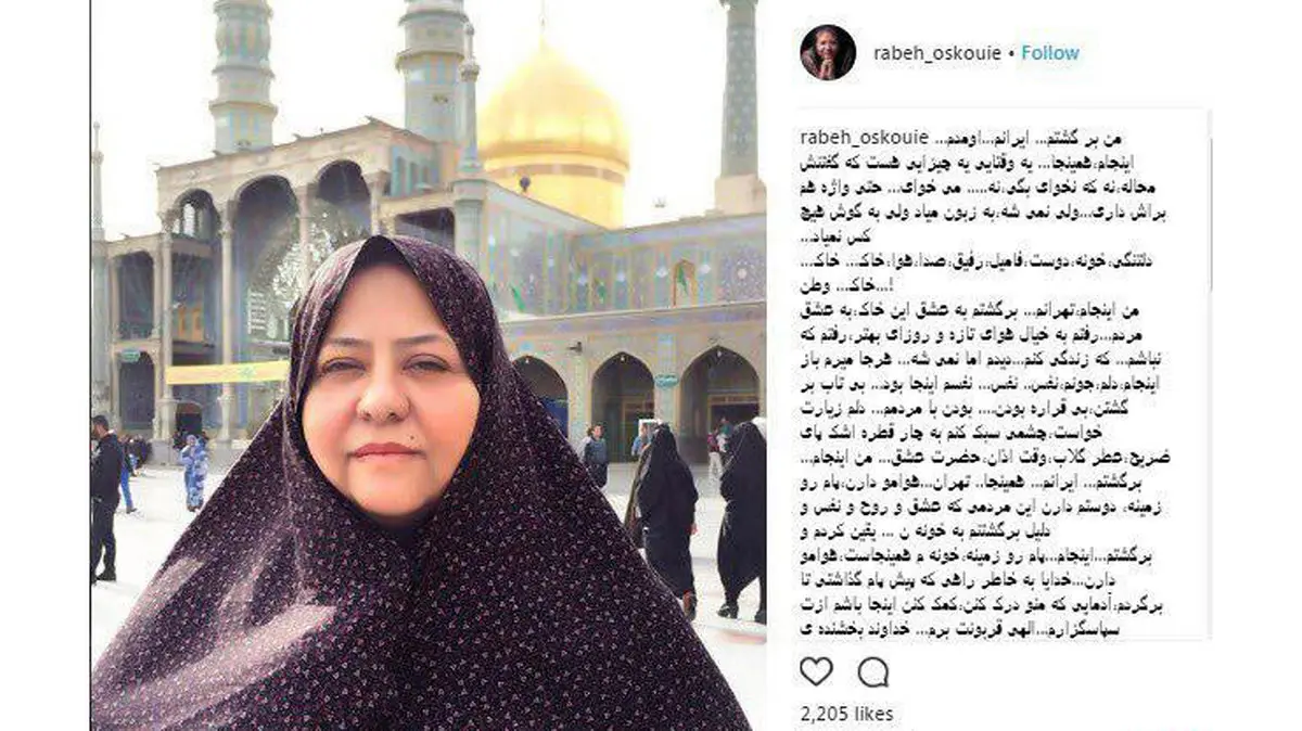 رکنا: رابعه اسکویی با انتشار عکسی از خود در مشهد مقدس صفحه اینستاگرامش را به روز رسانی کرد.