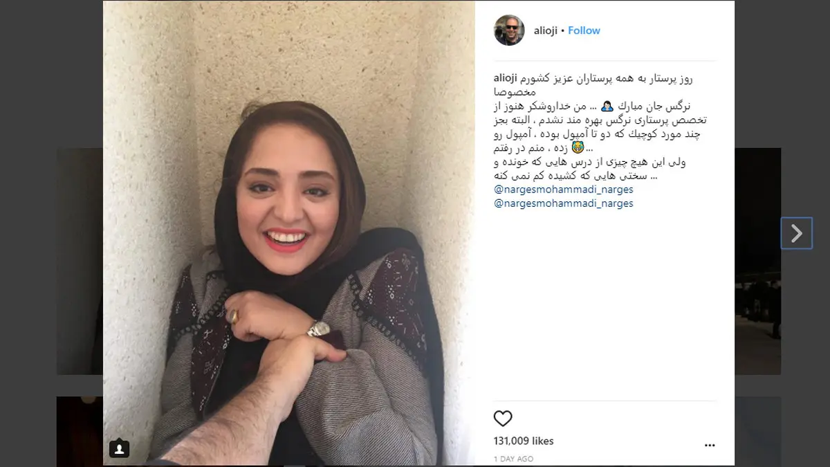 رکنا: علی اوجی بازیگر و تهیه کننده موسیقی کشور روز پرستار را به طرز جالبی به همسرش نرگس محمدی بازیگر سینما و تلویزیون تبریک گفت.