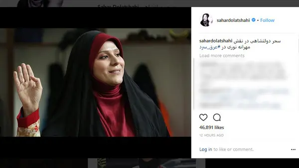 وی با انتشار این عکس در اینستاگرامش نوشت: سحر دولتشاهى در نقش مهرانه نورى در عرق سرد