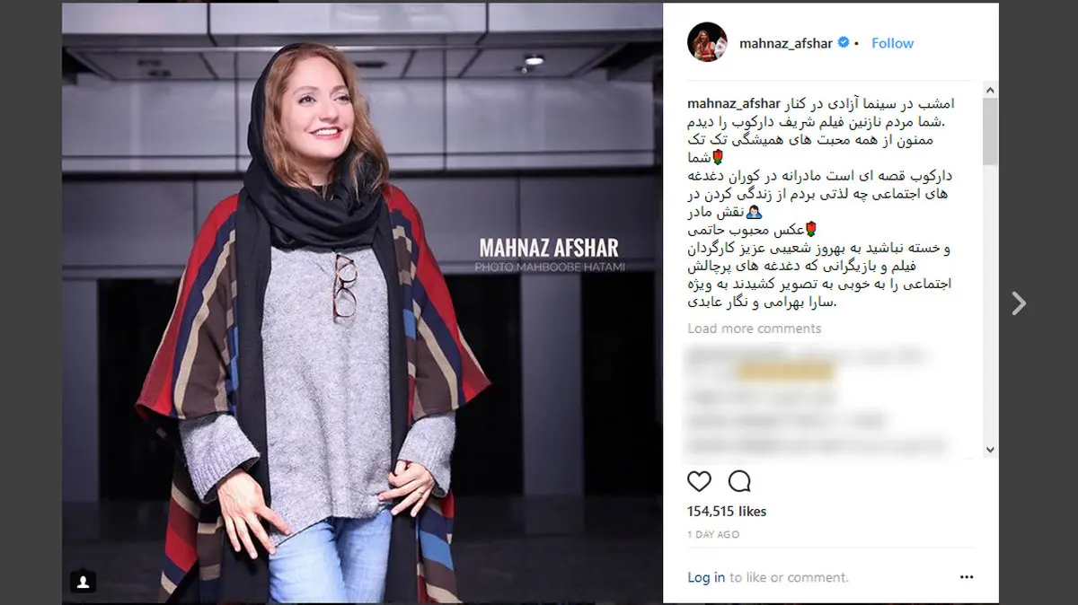 رکنا: جدیدترین تصاویری که مهناز افشار در صفحه شخصی اش منتشر کرده مربوط می شود به سی و ششمین جشنواره فیلم فجر.