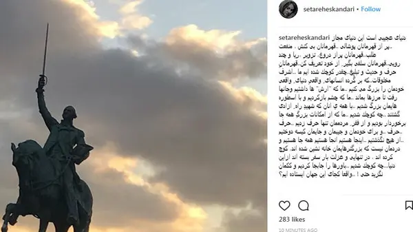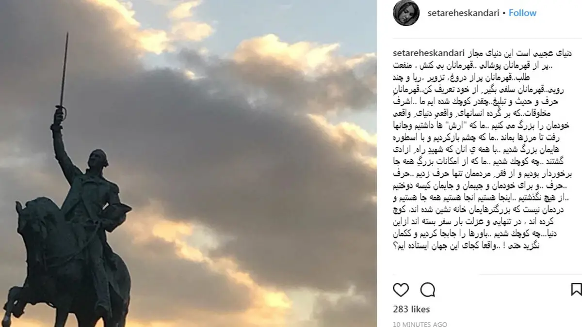 ستاره اسکندری، بازیگر Actor سینما Cinema و تلویزیون در صفحه اینستاگرامش نوشت: