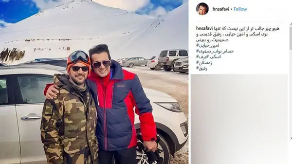 «حسام نواب صفوی» بازیگر Actor سینما Cinema و تلویزیون با انتشار عکسی در پیست اسکی به همراه امین حیایی در اینستاگرام Instagram خود نوشت: