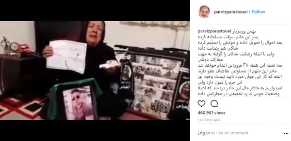مادر این متهم از مسئولین تقاضای عفو دارند.