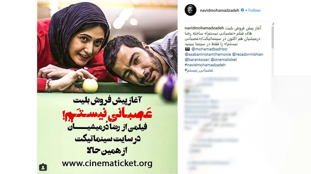 رکنا: نوید محمدزاده در اینستاگرام خود از آغاز پیش فروش فیلم عصبانی نیستم خبر داد.