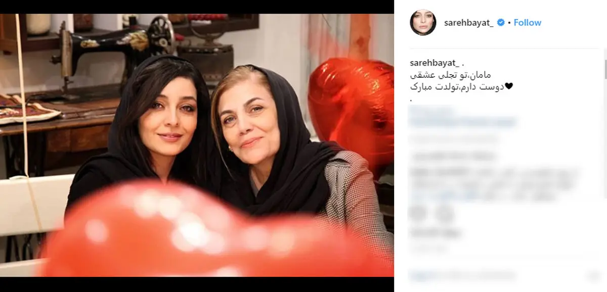 رکنا: ساره بیات روز تولد مادرش عکسی به همراه او منتشر کرد.