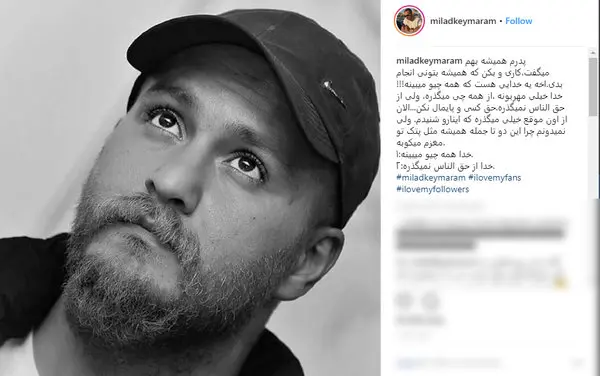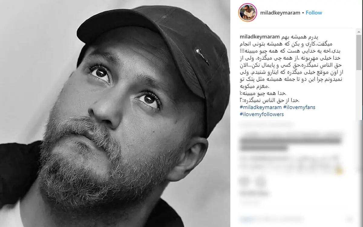 رکنا: میلاد کی مرام با انتشار پستی به نصیحت پدرش درباره حق الناس اشاره کرد.