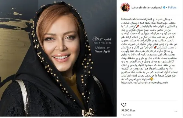 رکنا: بهاره رهنما بازیگر سینما و صدا و سیما از معدود بازیگرانی است که بعد از فیلتر شدن تلگرام، یک اپلیکیشن جایگزین را به طرفدارانش معرفی کرد.
