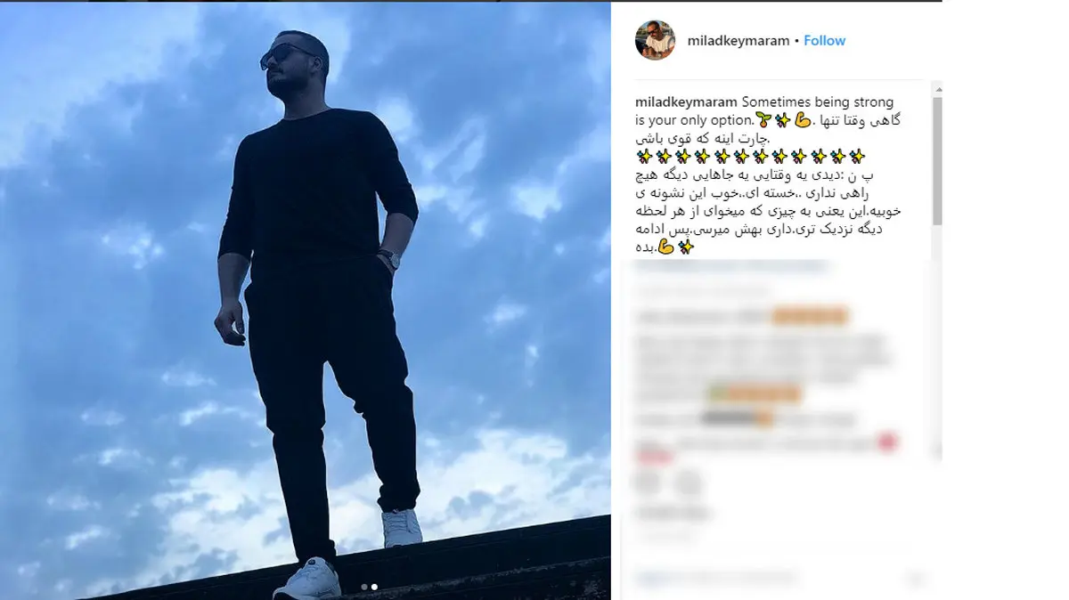 رکنا: میلاد کی مرام با انتشار عکسی از خودش تنها چاره کار خود را قوی بودن دانست.
