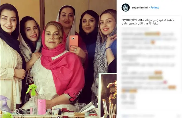 وی با انتشار این عکس در اینستاگرامش نوشت: همه ی خوبان در سریال پاهای بیقرار کاری از آقای منوچهر هادی