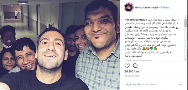 ١٠ سال پیش با بچه هاى این مرکز توانبخشى تئاتر کار کردم و یه نمایشنامه اى رو بعد از یک سال رسوندم به اجرا و خیلى هیجان زده بودم که تونستىم کارى که همه میگفتن شدنى نیست و دشواره با پشتکار این بچه ها و پیگیرى خودم به ثمر نشست ، خوشحالم دیدمشون دوباره و اینکه بعد ١٠ سال هنوز یادشون بوده هنوز دوستم دارن و نگاهم کردن وکارهامو دیدن