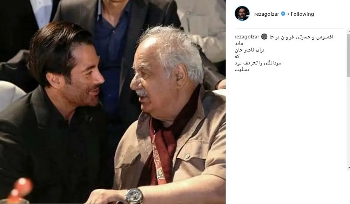 رکنا: محمدرضا گلزار هم با پستی تلخ درگذشت ناصر ملک مطیعی را تسلیت گفت.