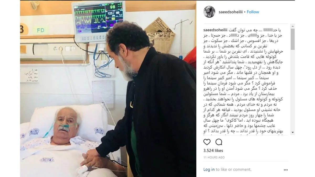 رکنا: سعید سهیلی برای ناصر ملک مطیعی پستی پر از آه و نفرین منتشر کرد.