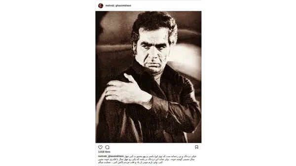 مهراب قاسمخانی در اینستاگرامش نوشت: «خیلى دردناک و بى رحمانه ست که توى اوج باشى و یهو مجبورت کنن چهل سال بشینى گوشه خونه... ولى شاید این دردناک تر باشه که یکى رو چهل سال با قلدرى خونه نشین کنى، ولى بازم نتونى از یاد و قلب مردم پاکش کنى... تسلیت میگم.»