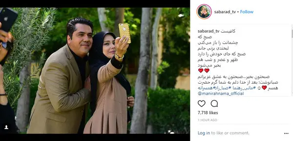 رکنا: صبا راد مجری معروف تلویزیون و همسر مانی رهنما با انتشار عکسی دونفره یک پست عاشقانه نثار همسرش کرد.