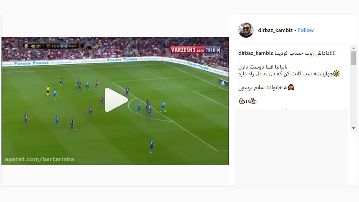 رکنا: کامبیز دیرباز با انشتار ویدئویی از سوتی پیکه با این بازیکن و مدافع اسپانیایی شوخی بامزه ای کرد.