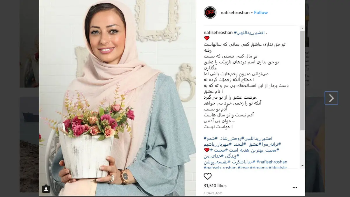 رکنا: نفیسه روشن در اینستاگرام خود عکسی از خودش که گلدان به دست دارد منتشر کرد.
